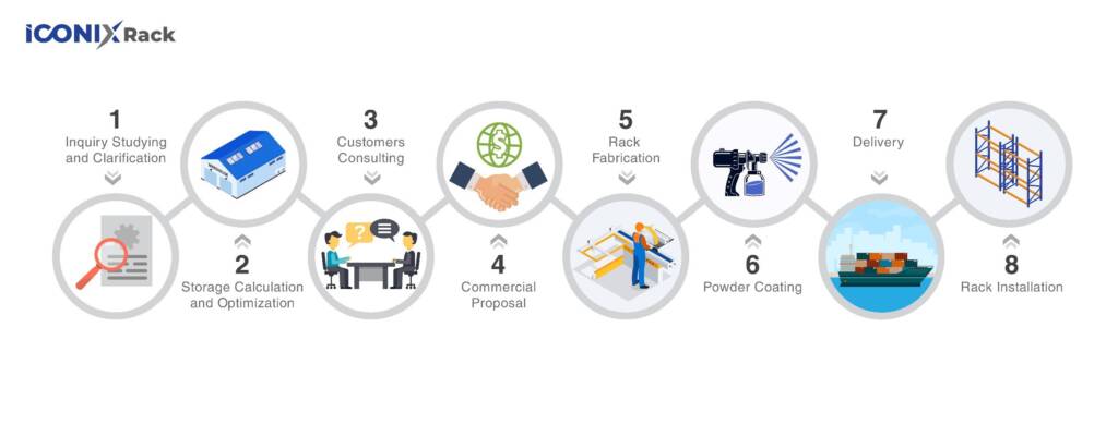At ICONIX Rack, we follow a meticulously crafted production procedure to ensure the highest quality of metal racking and shelving systems. Our step-by-step approach guarantees precision, durability, and efficiency in every product we deliver.